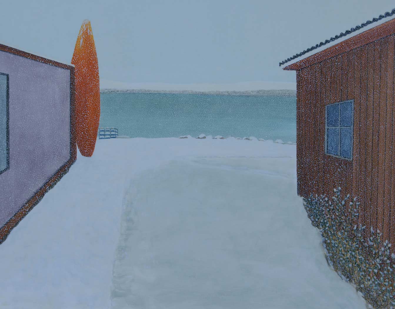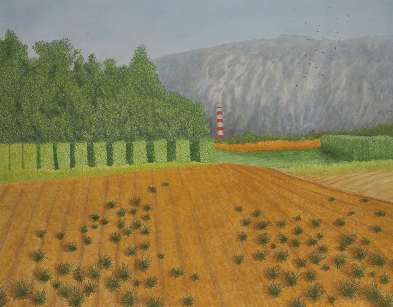 “Some encounters make an instantaneous god appear in the fabric of things. The world suddenly very clearly speaks to us in a different way, and at the same time, the unknown takes over. Recomposing the carnal body of this instantaneous god and setting it in a durable matter: this is what Pierre Montant accomplishes. A way of painting which perpetuates not the physicality of the site or the object, but what happened between the spectator (it is immediately ourselves) and the face of the world suddenly carrying a more intense call. These paintings are commemorative revelations: simply being there was wonderful, and the wonder must be prolonged.”